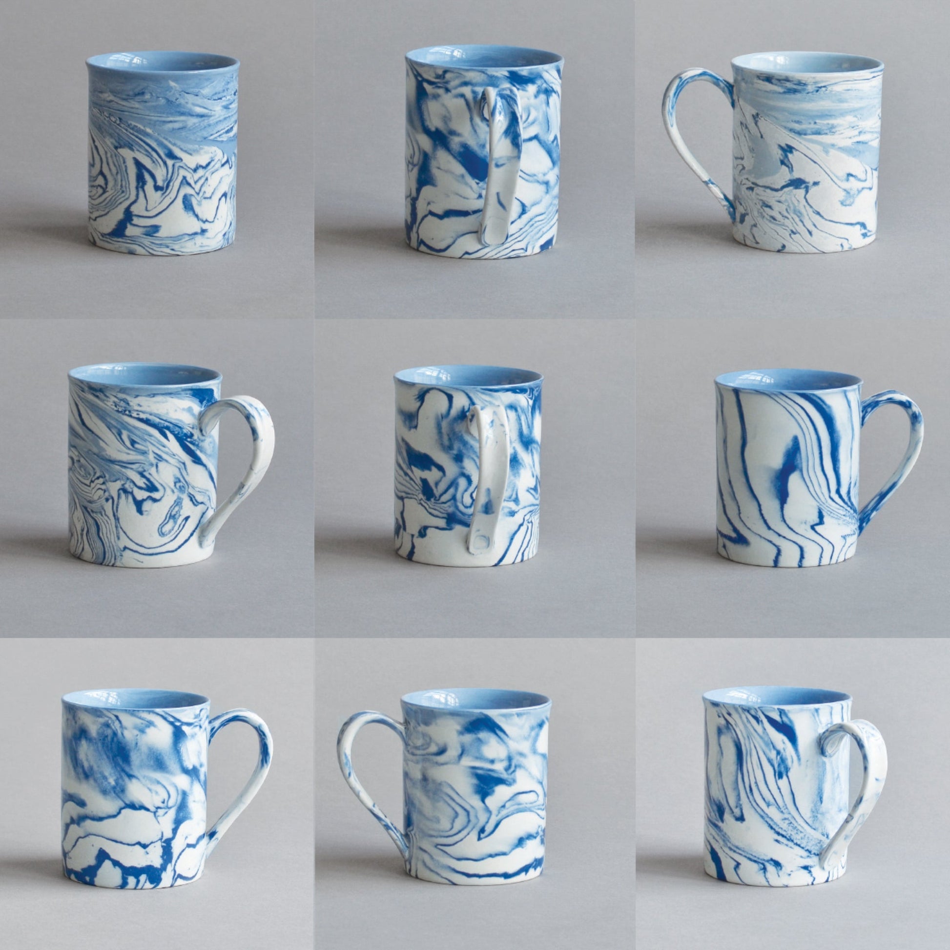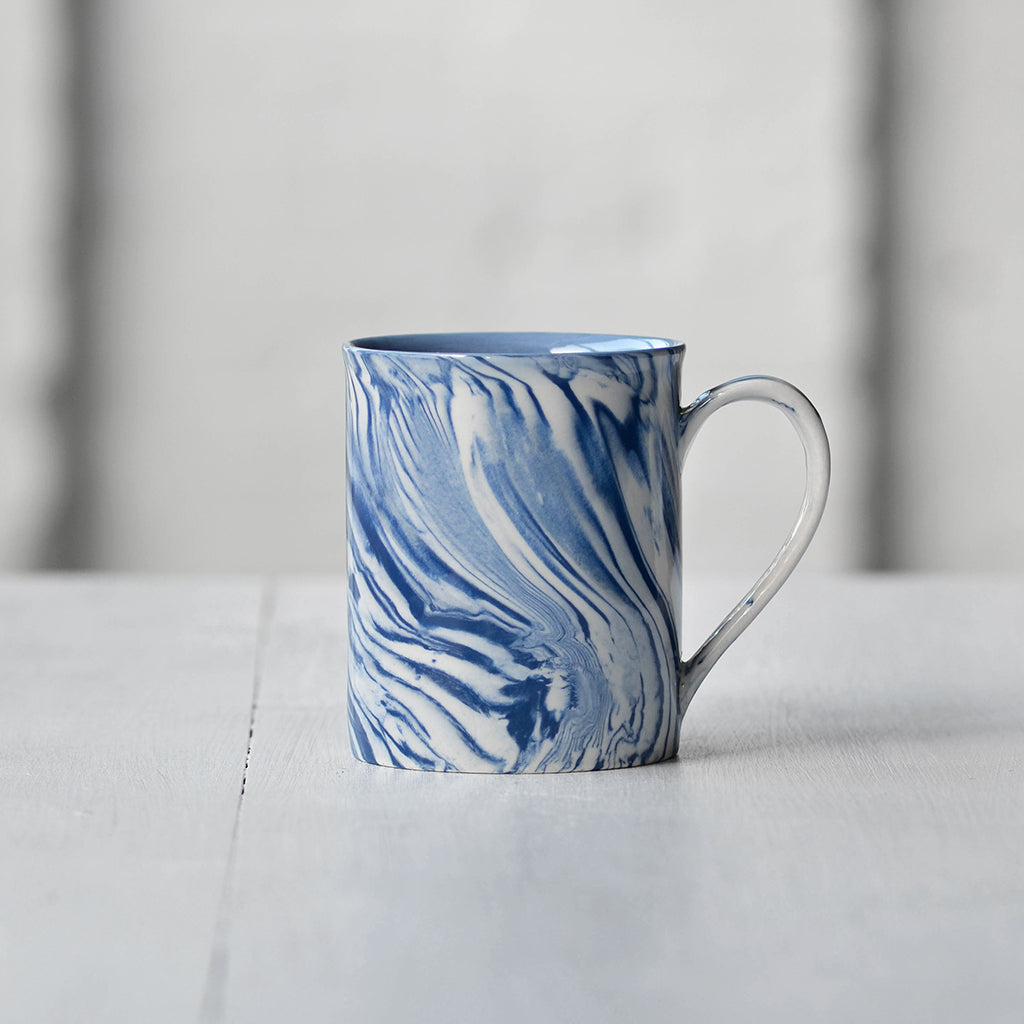 Combining the traditional blue and white colour way of traditional pottery, with a striking, abstract and completely unique pattern on every mug, this is the perfect everyday mug, with hints of crashing waves and deep blue sea.