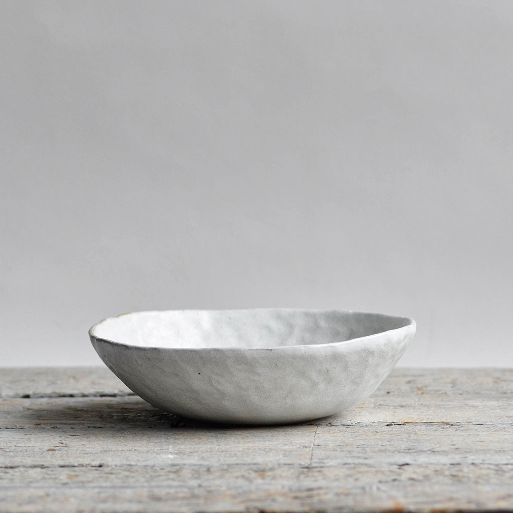 The Hand Moulded Pasta Bowl combines functionality with an organic, handmade finish. After being wheel-thrown, the bowl is hand-moulded to achieve irregular edges and a dimpled surface, making each piece unique. The practical size and shallow profile make it perfect for serving pasta, salads, or main courses, with a beautifully rustic, artisanal charm.